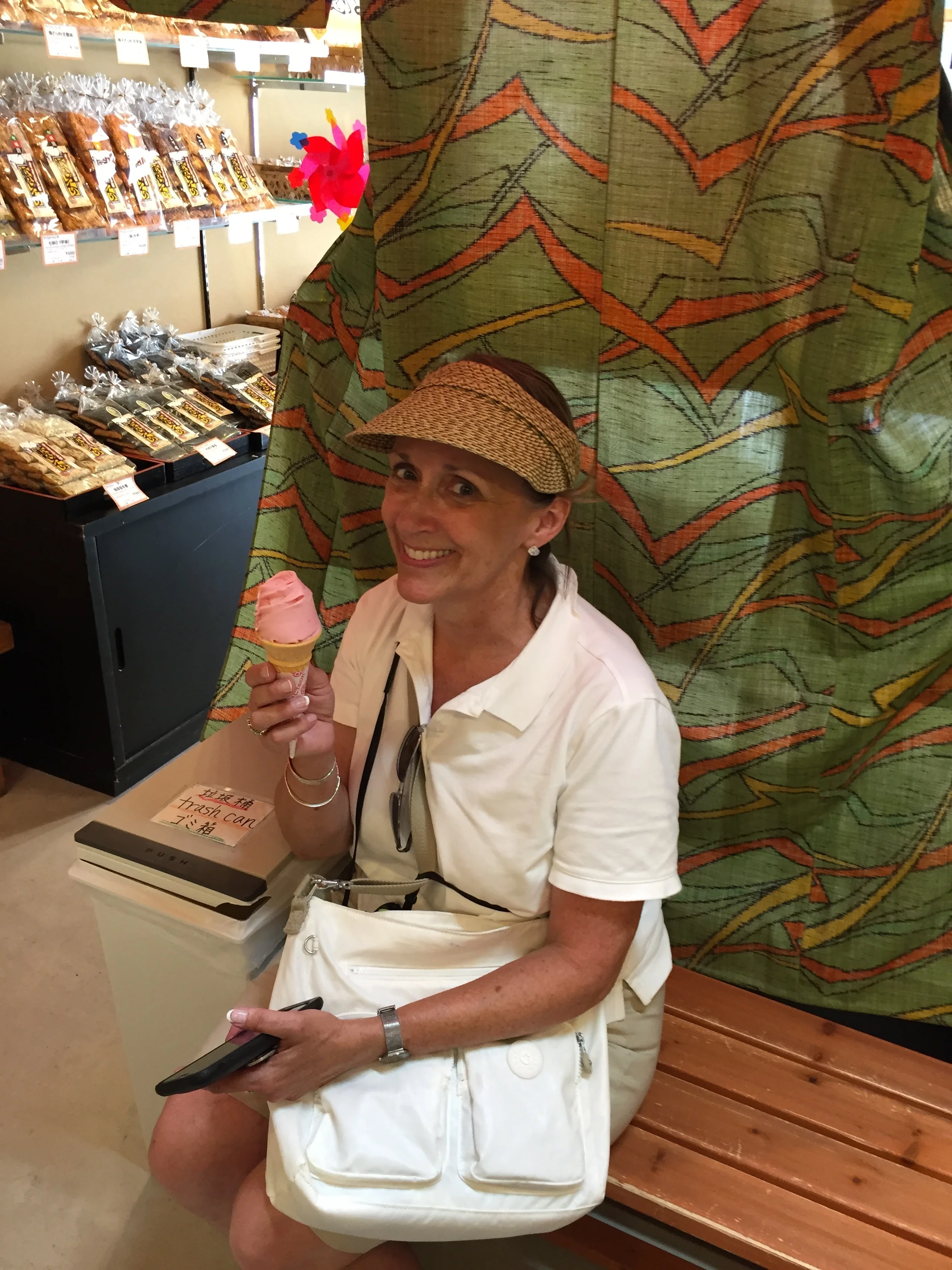 After we descended, we cooled off with ice cream, shopped around for wooden spoons and made our way to Yakigaki no Hayashi for oysters. The raw oysters were delicious (your first ever!). The local beer was good too. We decided that each day we'd make a point to try something you'd never done before.